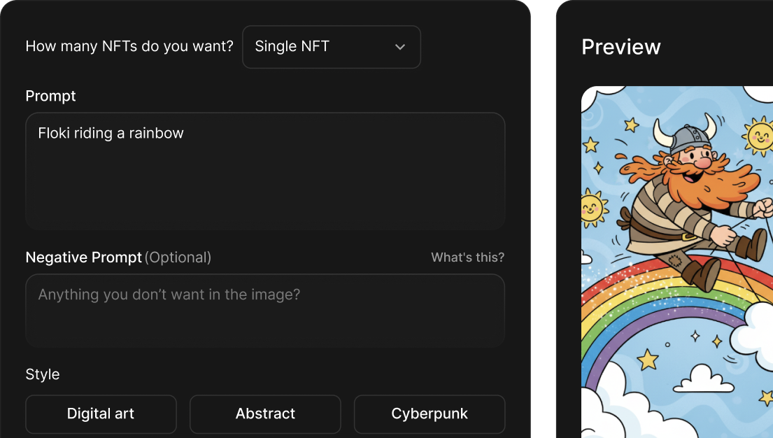 Unleash creativity with AI-designed, one-of-a-kind NFT artwork. Effortless, powerful, and unique – take your NFT game to the next level.