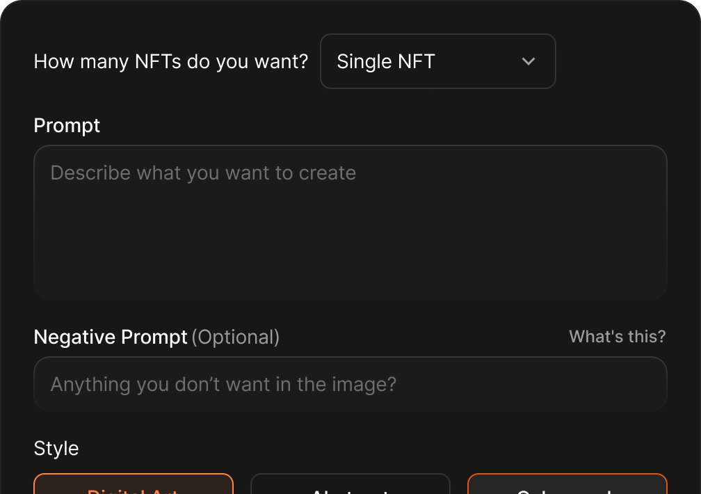 Create Unique NFTs with AI in seconds.