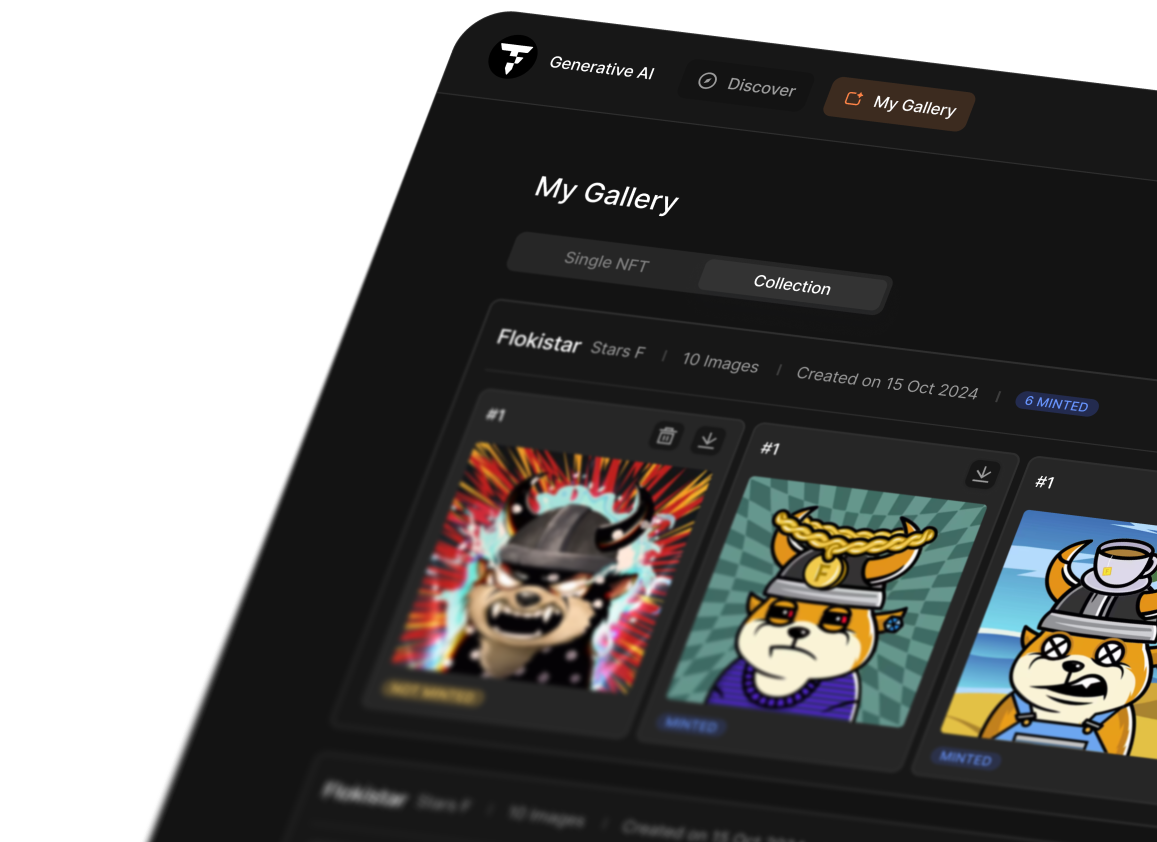 Explore what creators like you are bringing to life with AI. Every piece is one-of-a-kind generated by our AI and stored on-chain.